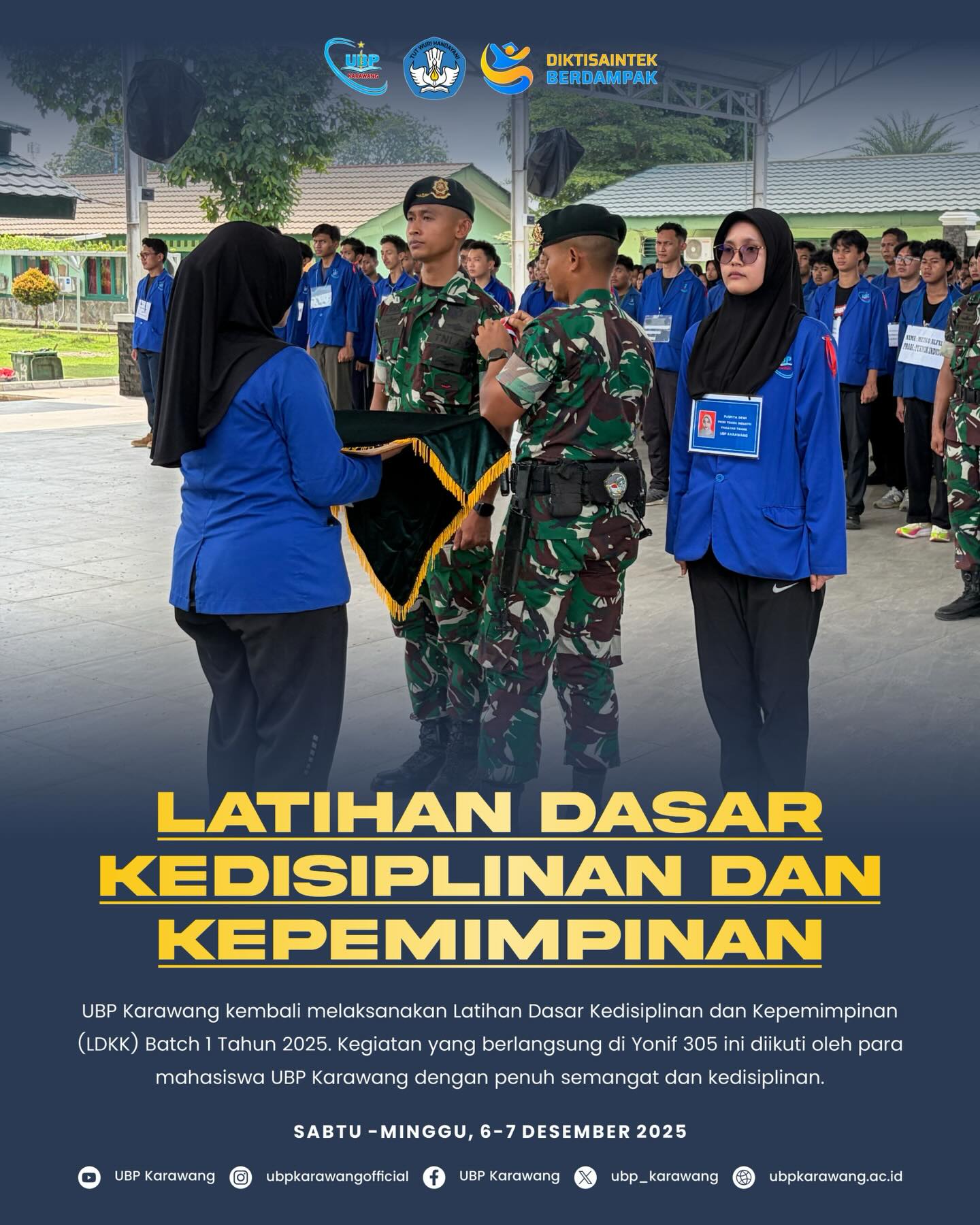 UBP Karawang kembali menyelenggarakan Latihan Dasar Kedisiplinan dan Kepemimpinan (LDKK) Batch 1 Tahun 2025 sebagai upaya pembentukan karakter mahasiswa yang berintegritas dan berjiwa kepemimpinan. 🎖️🔥