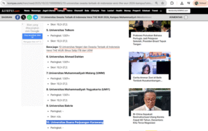 Berdasarkan data resmi yang dirilis oleh THE, UBP Karawang tidak hanya tercatat dalam direktori pemeringkatan global, tetapi juga berhasil menempati posisi 10 besar perguruan tinggi swasta terbaik di Indonesia dan peringkat ke-17 secara nasional dalam pemeringkatan THE WUR 2026. Pencapaian ini turut dikutip oleh Kompas.com dalam artikel berjudul “10 Universitas Swasta Terbaik di Indonesia versi THE WUR 2026” yang terbit pada 22 Oktober 2025 (Kompas.com, 2025).